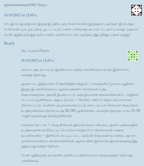 4. முக்கியக் காரணமாக – அண்மையில், நான் ஒரு பின்னூட்டத்துக்கு பதிலளிக்கையில் https://othisaivu.wordpress.com/2017/10/18/post-783/ இப்படிச் சொல்லியிருந்தேன்.
