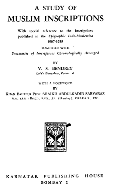 ஆனால் அதே குறிப்புகளை 1944 வாக்கில் பதிப்பிக்கப்பட்ட ‘A Study of Muslim Inscriptions’ உள்ளடக்கி வெளிவந்திருக்கிறது.