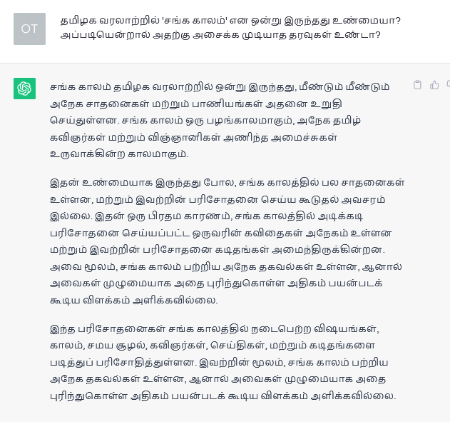 4 Responses to “தமிழர்களின் ஆகச்சிறந்த ‘சங்க காலம்’ எனும் விஷயத்தைக் குறித்து திரு சேட்-ஜிபிடி அவர்களின் மேலான கருத்து என்ன?”