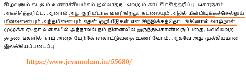 என்னவோ அவருடைய ‘கிழவனும் கடலும்’ குறு நாவலில் – ஏகத்துக்கும் குறியீடு குறியீடாக குறியீட்டுக்கொண்டே இருந்திருக்கிறார் என்பது போல மானாவாரியாக அட்ச்சிவுட்டிருக்கிறார் என் பெரும்பேராசான்…