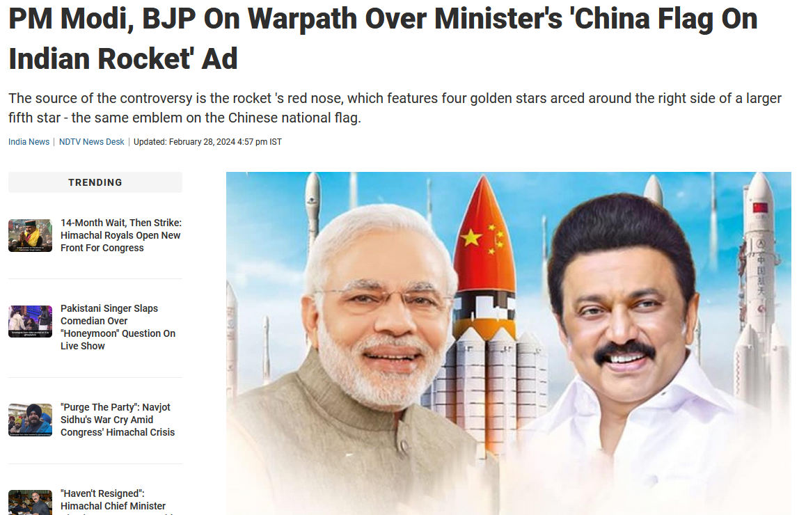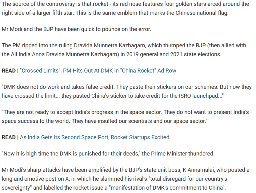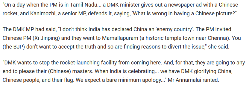 உலகத்தின் மிகச் சிறந்த திராவிடமாடல் மூளைத்திறன்படி, அதிதிறமை வாய்ந்த அமோக முதலையமைச்சர் தி முக இசுடாலிர் வழிகாட்டலில், அமைச்சர் அனிதா ராதாகிருஷ்ணன் இந்திய ராக்கெட் மீது சைனாக்கார இசுடிக்கர் ஒட்டியது…