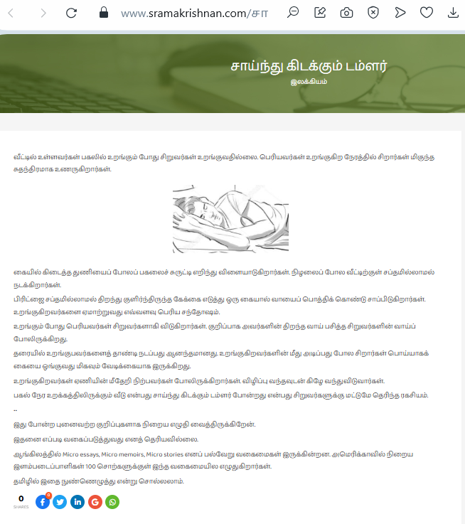 2 Responses to “என்காக விமர்சனம்: சாதா எஸ்ராமகிருஷ்ணனும் மைக்ரோஎஸ்ராமகிருஷ்ணனும்”