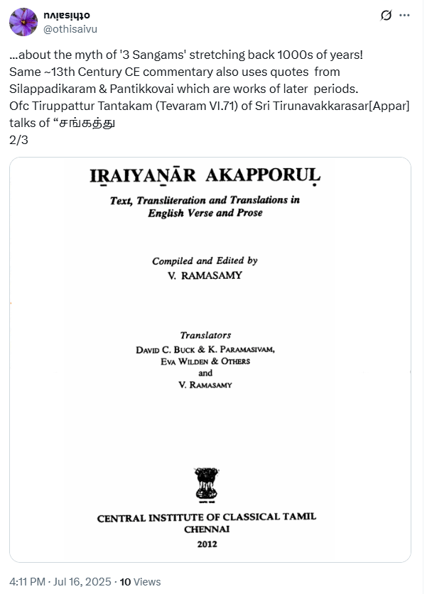Is there any evidence to say that ‘Sangam Age’ is a myth & that things do not add up? (of course this is not to say that ettuthogai works or later patthu-p-pattu collection don’t exist)