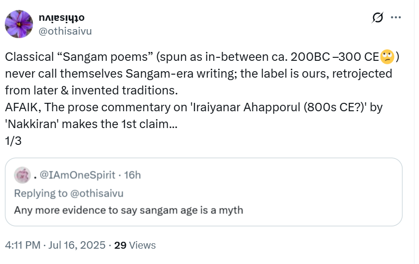 Is there any evidence to say that ‘Sangam Age’ is a myth & that things do not add up? (of course this is not to say that ettuthogai works or later patthu-p-pattu collection don’t exist)