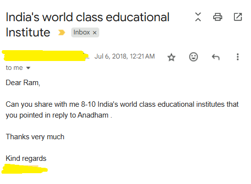 (NOTE: Folks get annoyed when they notice that there is no Tamilnadu specific school in the list. But I know what I am talking about. Yes. There is NOT a single good school for any half-reasonable education (leave alone being ‘good’) in Tamilnadu, that is setup by ‘Tamils’ or TN Govt.